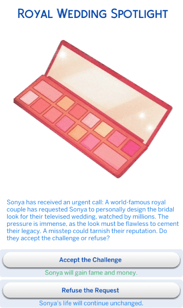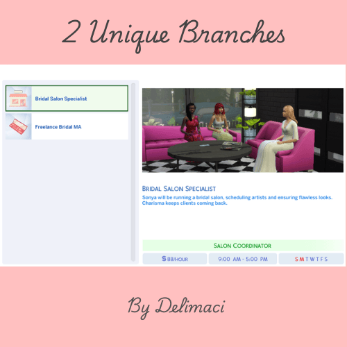 - Has fame opportunities, (fame opportunity for salon specialist branch coming soon). Accepting these will bring your sim fame, money and a buff.