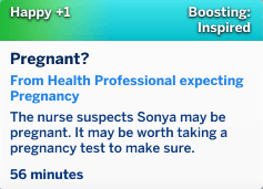 - Check pregnancy possibility (this is only applied to sims who can be impregnated, does not know they are pregnant & only once your sim has reached at least level 3 in the below careers). If the sim is pregnant, this will result in the sim having a buff, and a notification. The sim can then take a test to make sure!